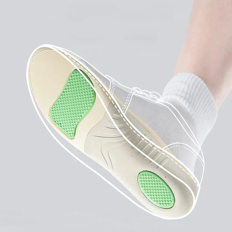 Grâce à sa structure multicouche, cette semelle absorbe les pressions exercées sur le talon et la plante du pied. Elle réduit les douleurs au quotidien et favorise une posture plus équilibrée, limitant les tensions dans les genoux et le bas du dos.